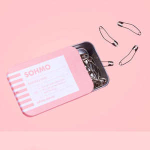 Product Name: SOHMO Basting Pins SKU: SHM017 Qty 50 Description: SOHMO Basting Pins – curved steel safety pins make quilt basting easy. Made from nickel plated steel, these pins are sharp and strong. Packaged in a gorgeous pink tin with sliding lid, these pins make great gifts or a luxe addition to your sewing kit. It’s important not to leave pi...